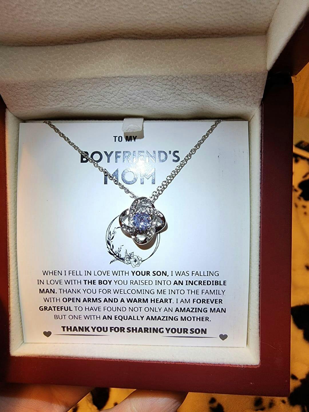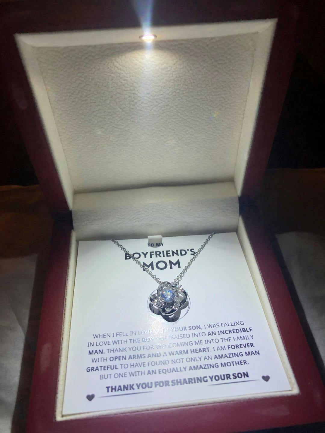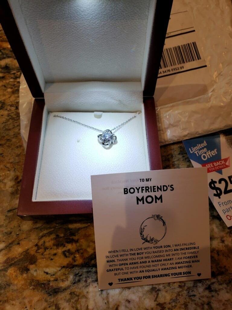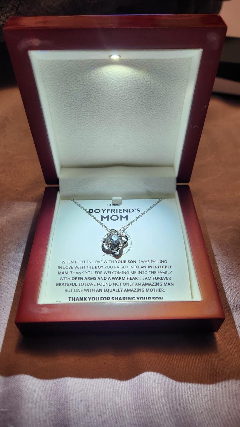 Imagine her reaction to receiving this beautiful Love Knot Necklace representing an unbreakable bond with your boyfriend's mom.