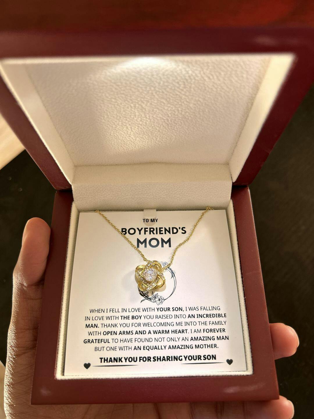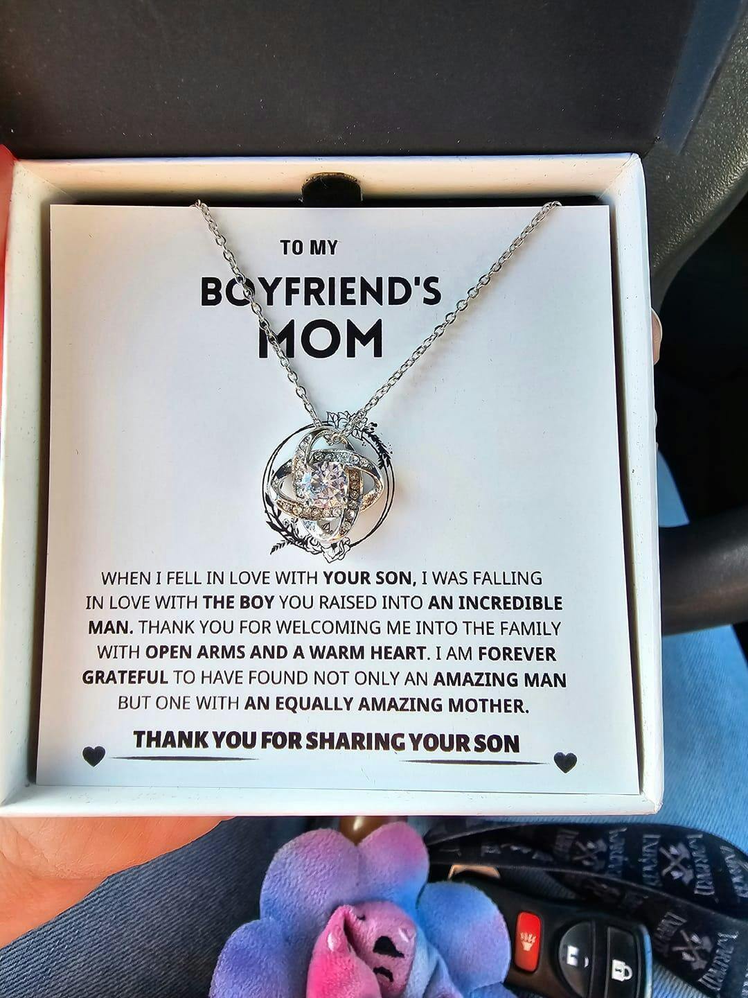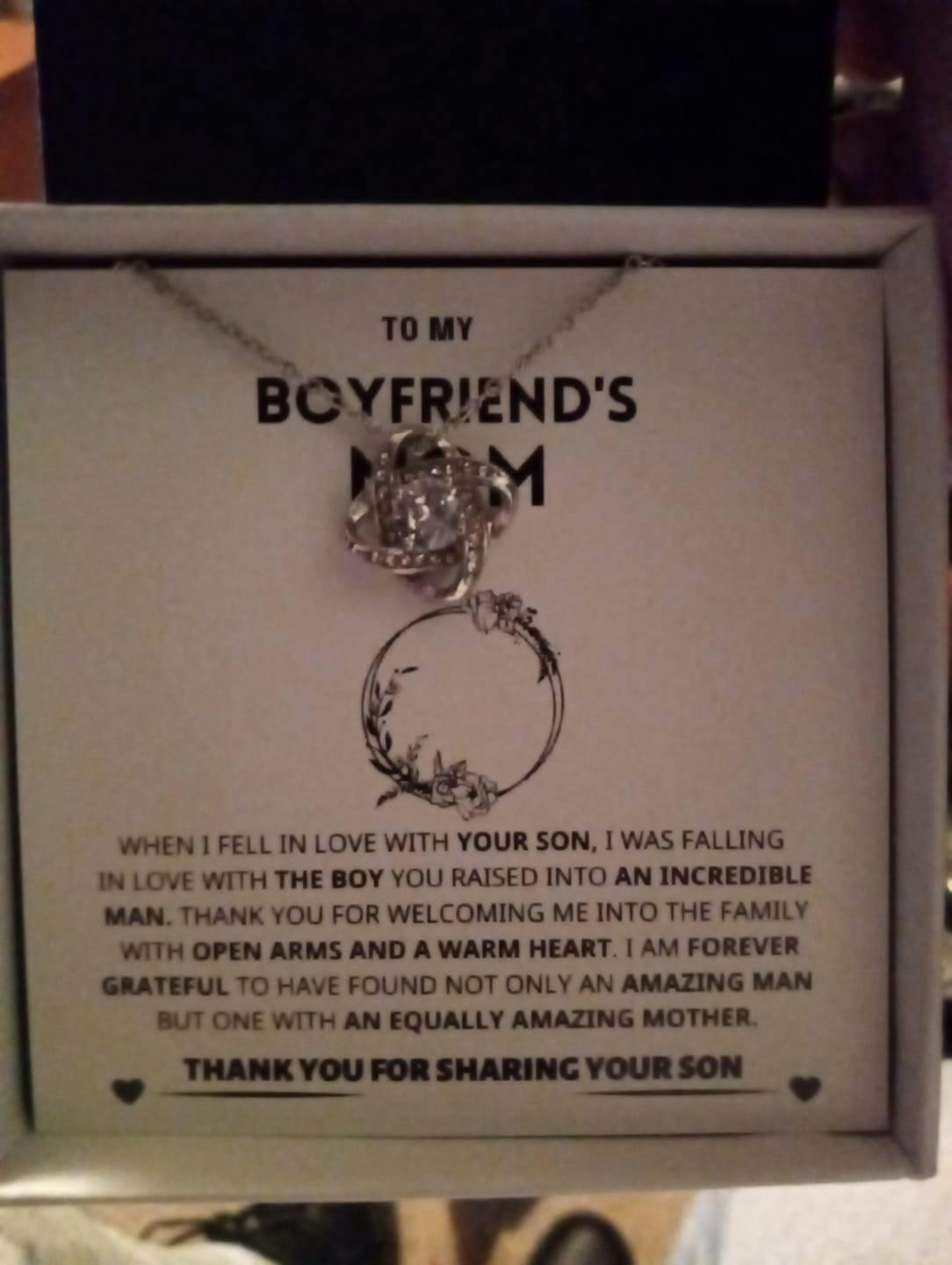 Imagine her reaction to receiving this beautiful Love Knot Necklace representing an unbreakable bond with your boyfriend's mom.