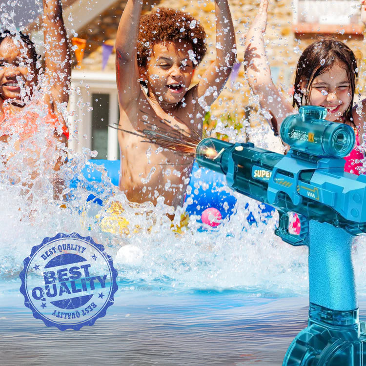 Designed with rugged materials and a splash-proof build, our water gun can withstand outdoor play. Take it to the pool or backyard with confidence, and focus on having a blast without worrying about damage.
