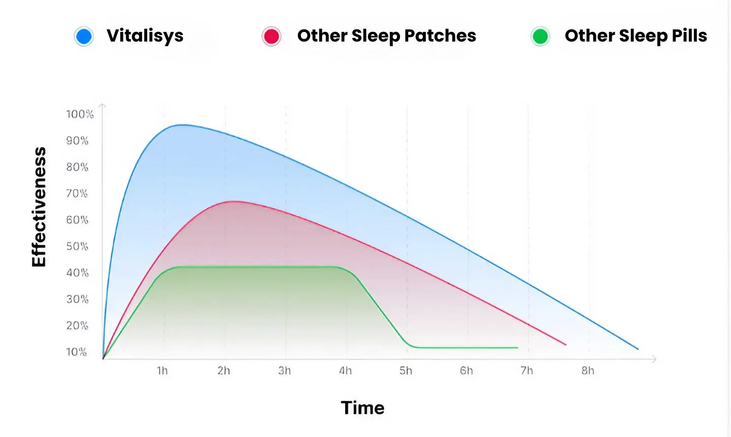 Unlike many other sleep improvement solutions, Heviluxy doesn't require you to take pills at certain times with foods, brew tea, or take additional steps. It has an incredible 65% absorption rate compared to 15% for most other oral solutions. All you need to do is peel off the protective film and place the patch on a hairless area on your skin.