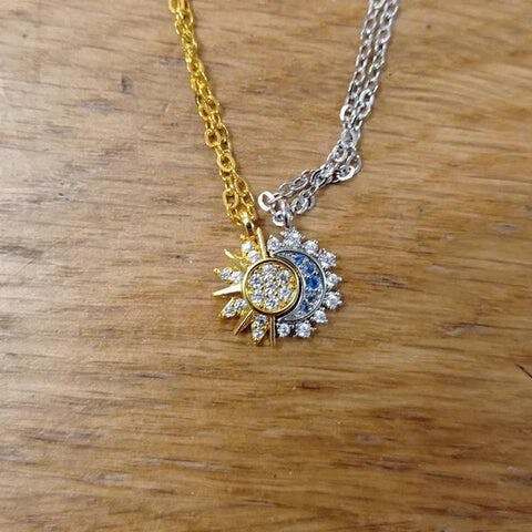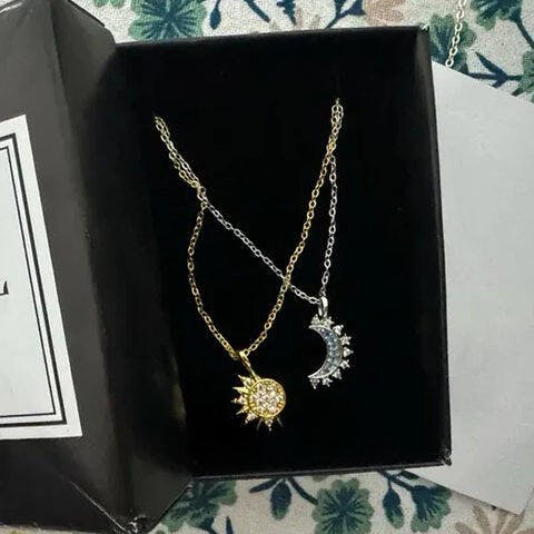 The Sun and Moon Magnetic Friendship Necklace is a meaningful way to celebrate your connection. With matching sun and moon pendants that effortlessly come together with a magnetic clasp, this necklace represents the perfect harmony between you and your best friend or loved one—opposites that fit together beautifully.