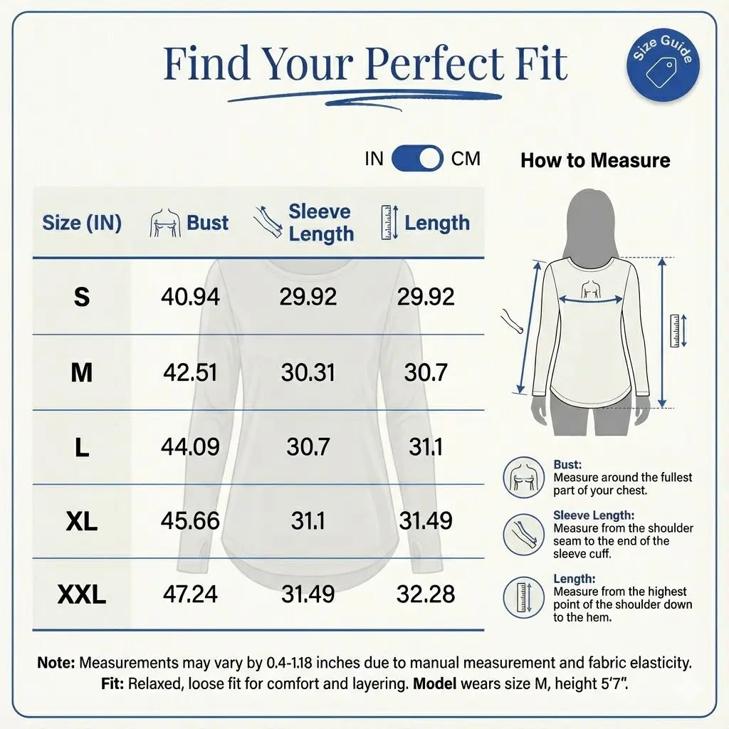 Cozy thumb holes keep your hands warm and sleeves in place on chilly days. The classic crew neck layers perfectly under jackets and blazers. Every detail is designed for real life—comfort and style in one.